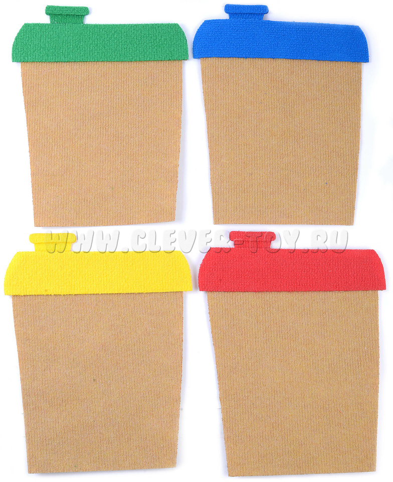 - гаражи для машинок 4 штуки: жёлтый, зелёный, синий, красный;