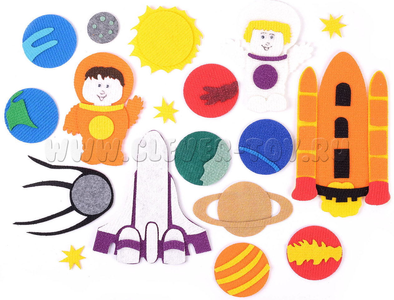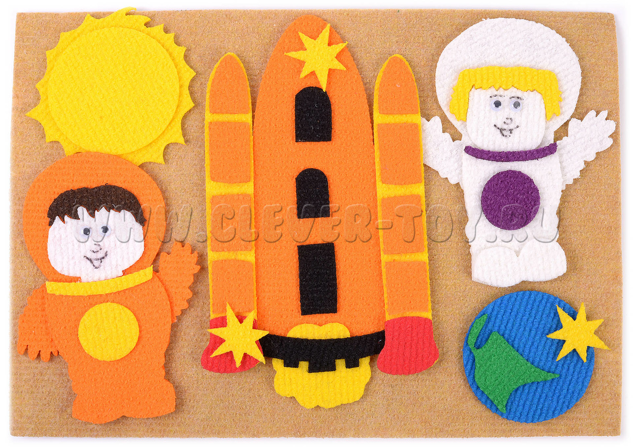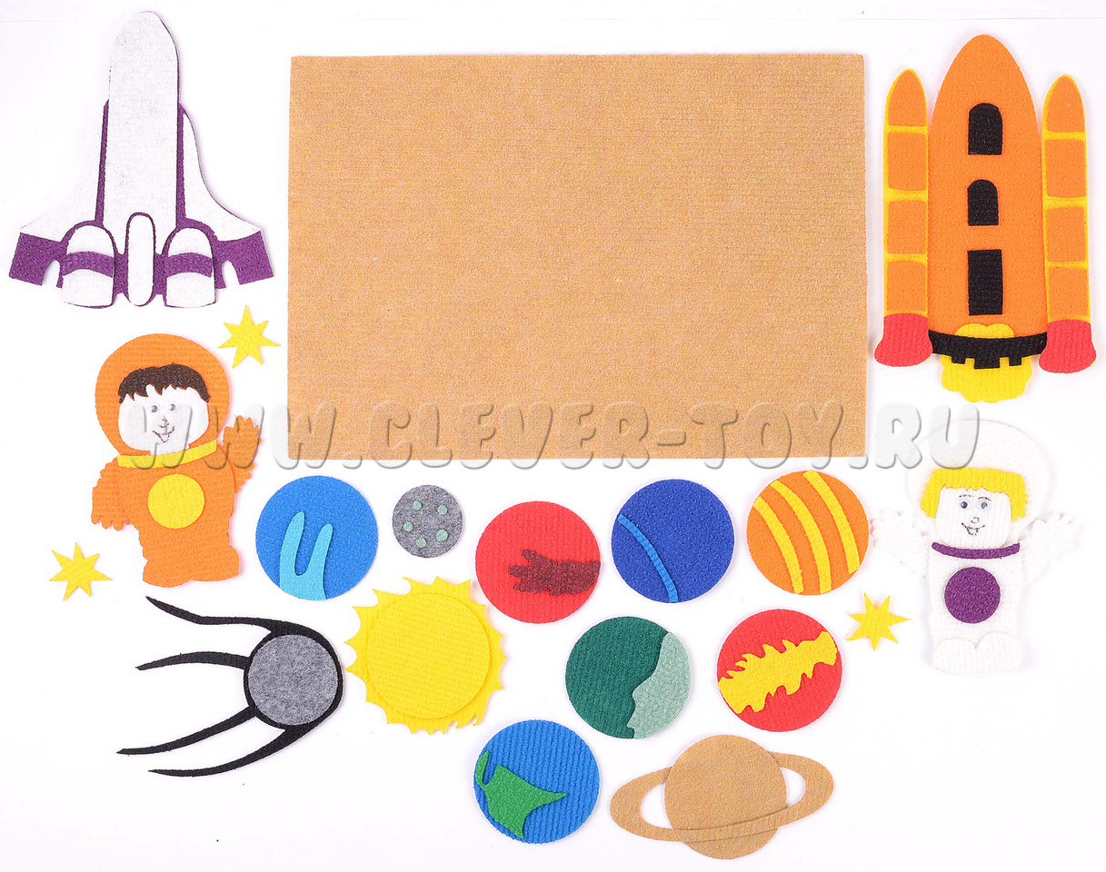 • космонавт – 2 шт. (мальчик и девочка), космический корабль – 2 шт., спутник, звезда - 3 шт.;