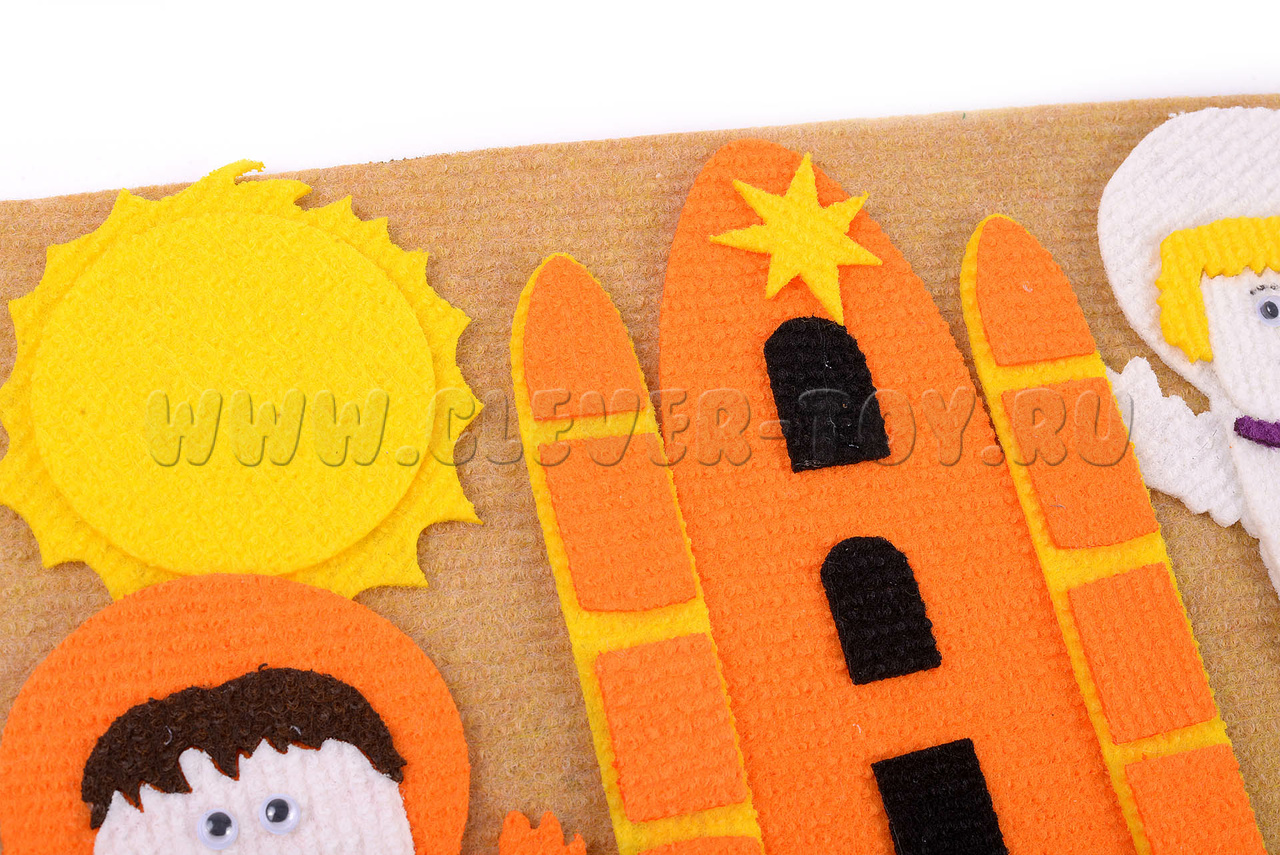 Все фигуры выполнены из прочного ковролина, снабжены липучками и детально прорисованы вручную.