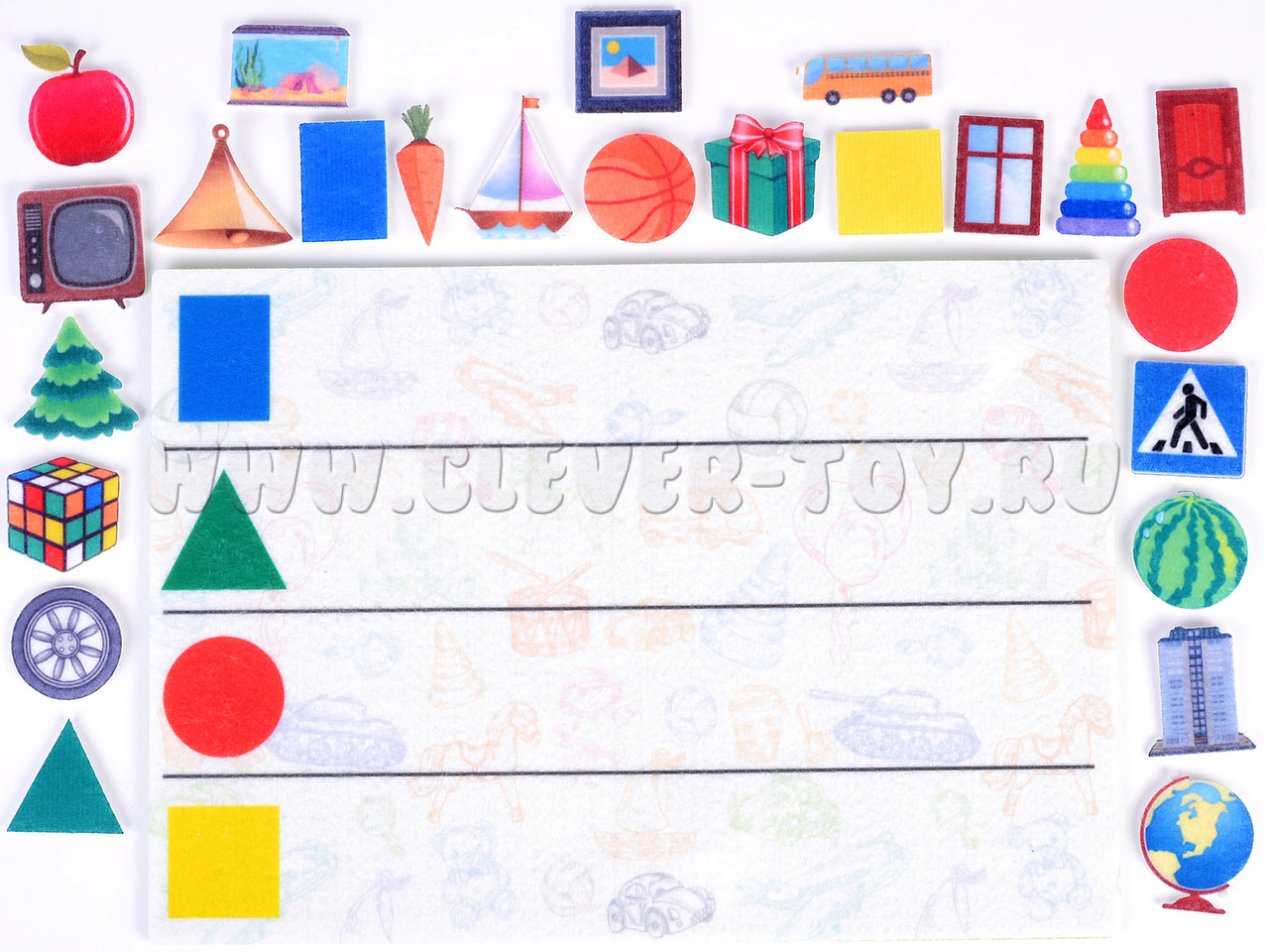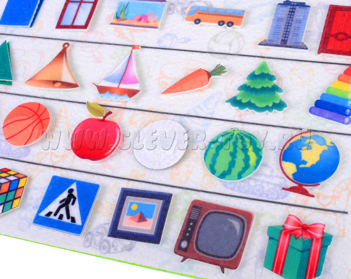 Игровое поле с карманом 20*30см, геометрические фигуры, фигуры предметов разной формы.