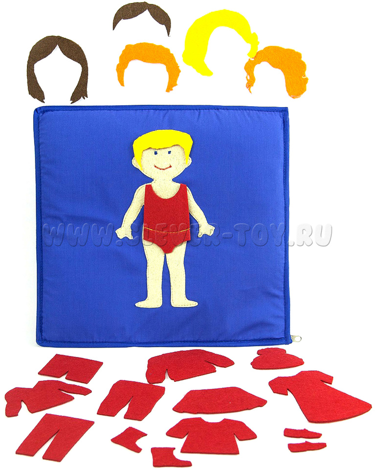 - одежда и обувь (синий, красный, желтый, зеленый) - куртка, теплые штаны, шапочка, пуловер, футболка, шорты, брюки, юбка, платье, трусики с маечкой, туфли, сапоги;