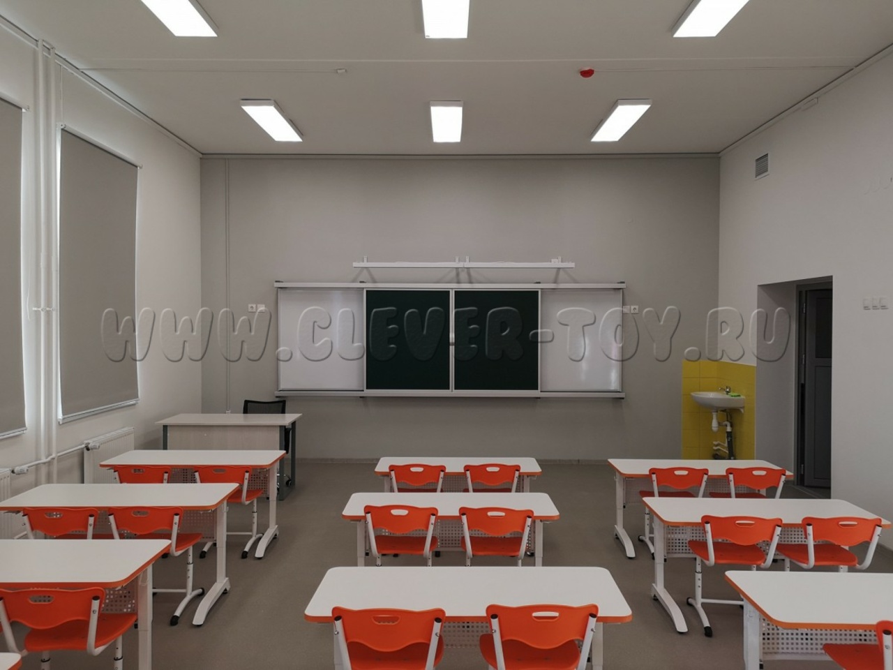 Рельсовая система — это цельная конструкция, состоящая из каркаса и четырёх рабочих поверхностей. Покрытие может быть магнитно-меловым, магнитно-маркерным или комбинированным.
