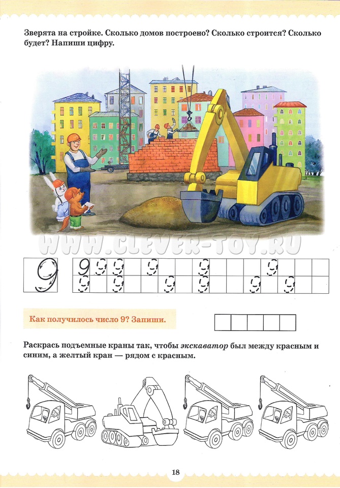 Вместе со сказочными персонажами Рыжиком и Пушистиком малыши, познакомятся с людьми разных профессий, закрепят знания цифр, вспомнят их последовательность в числовом ряду, познакомятся с составом чисел из двух меньших, узнают про сложение и вычитание, про математические знаки, научатся решать простые задачки, писать цифры.