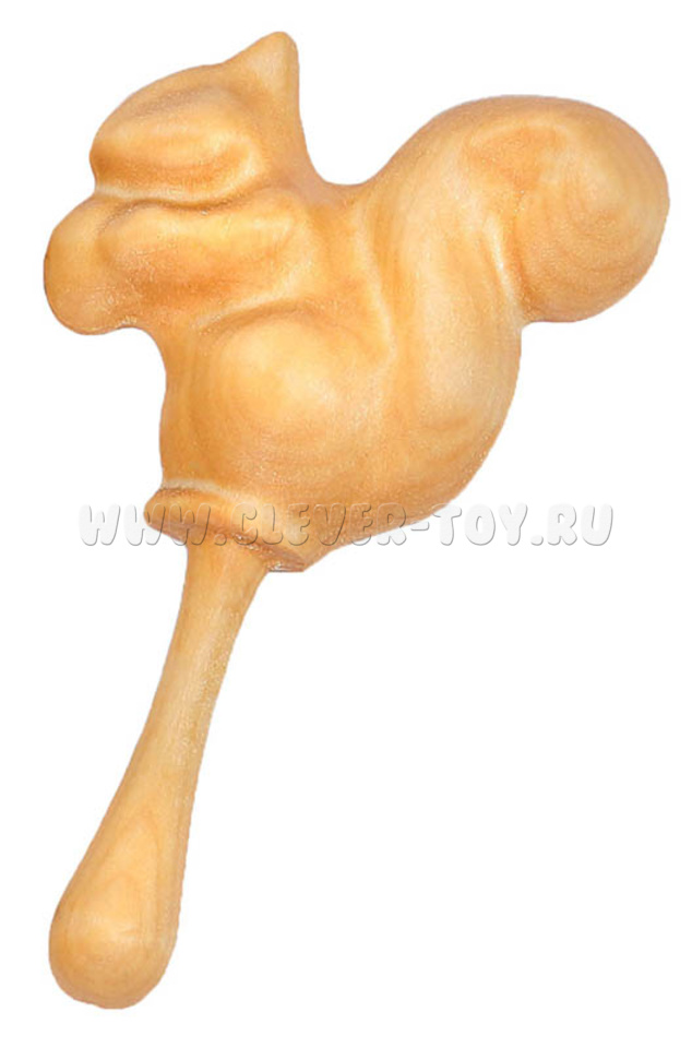Форма погремушки - белочка. Внутри - полая, наполнение - пшено, рис, гречка, сухой горох, бобы.