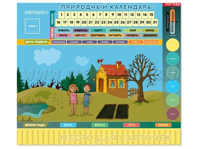 Дети с радостью будут использовать магнитные маркеры для обозначения времени года, месяца, дня недели, числа, часов и минут. Они также смогут указывать температуру на термометре и работать с карточками, которые представляют признаки весны, лета, осени или зимы.