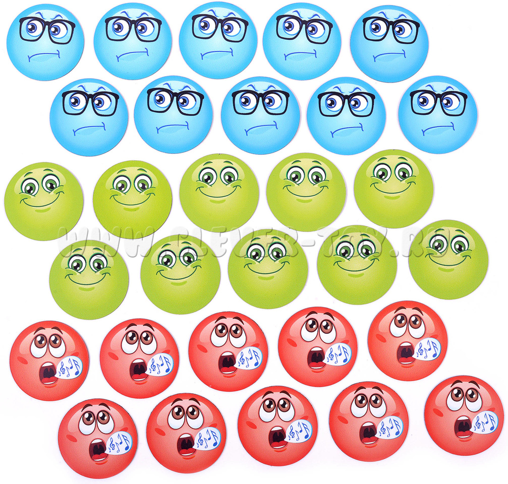 Набор магнитных смайликов (красный, зеленый и голубой)*