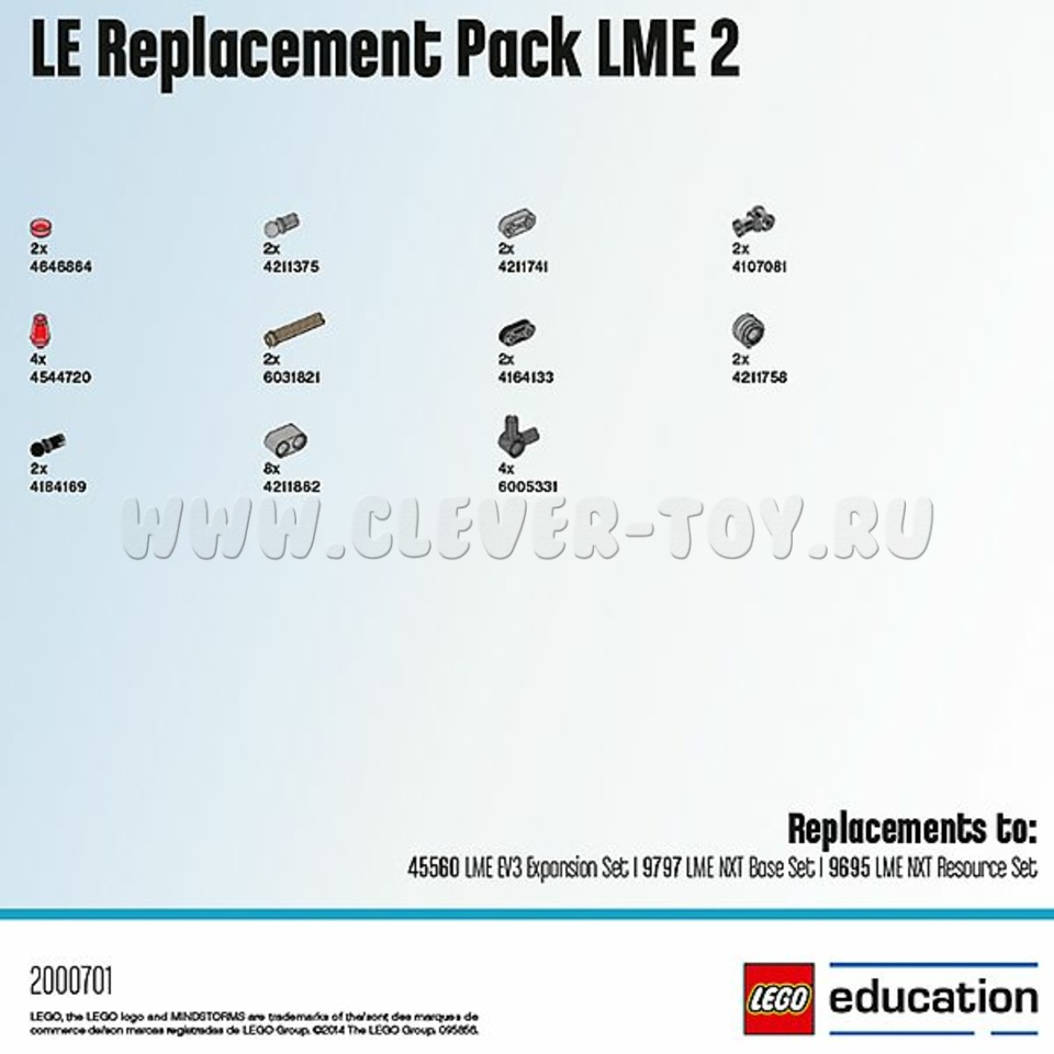 Дополнительный комплект из 32 запасных элементов LEGO к набору LEGO Mindstorms Education EV3.