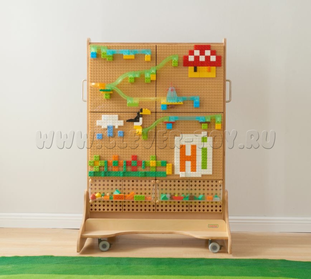 Внимание: колышки, сокровища, шнуровки, винты, кинетические треки, развивающие панели и другие комплекты для STEM-стены приобретаются отдельно.